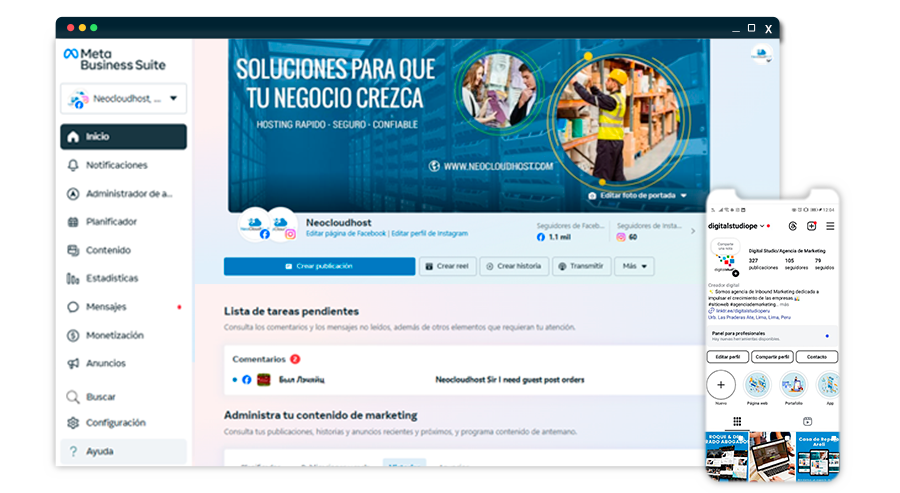 Lleva tu negocio al siguiente nivel aprovechando el poder de Facebook e Instagram. Nuestro servicio de Social Media Marketing combina creatividad y estrategia para que tu marca destaque con contenido visual impactante y mensajes que atraen a tu público ideal.